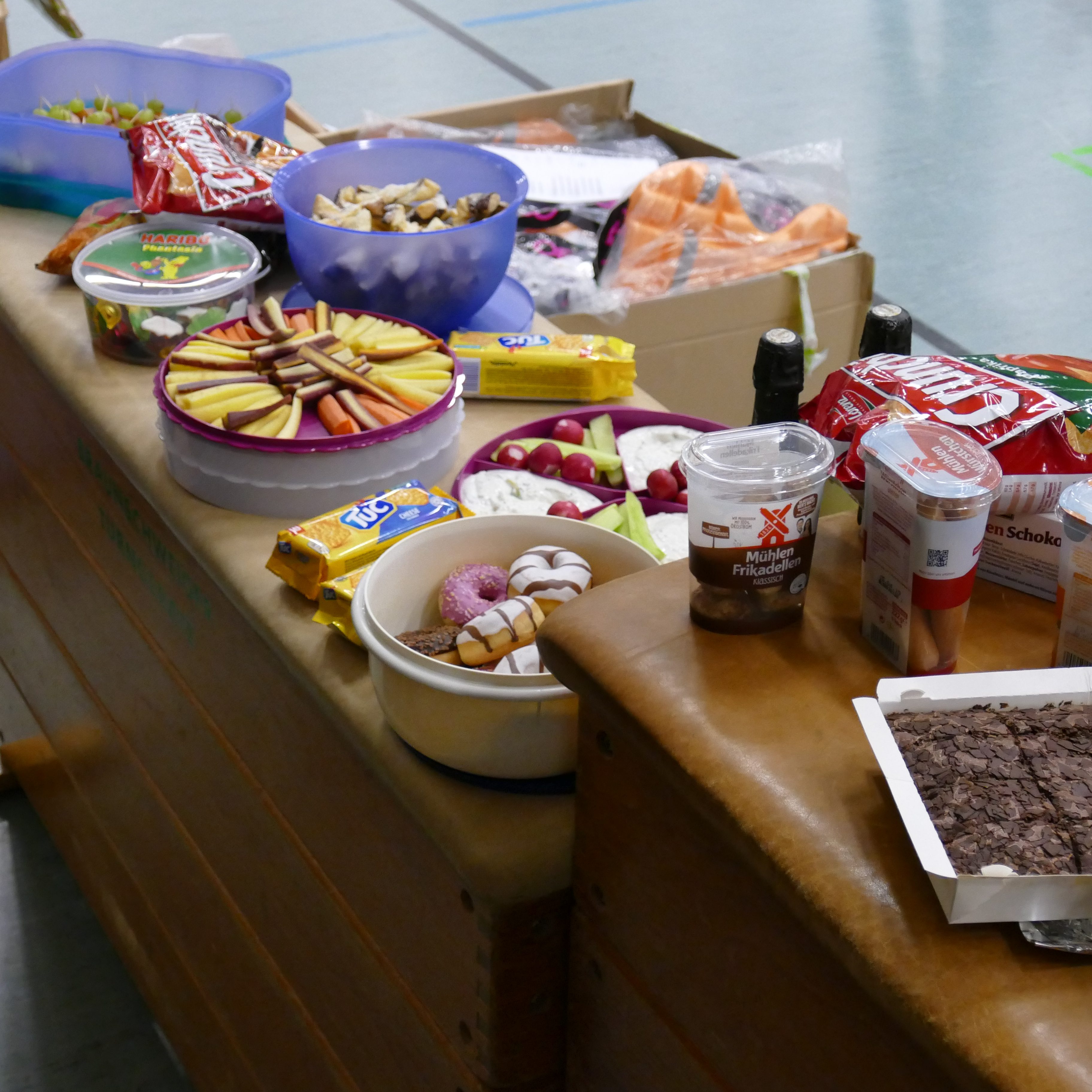 Aber am Freitag wurde nicht nur gefeiert, sondern es wurde sich auch sportlich betätigt, gemeinschaftlich Sirtaki getanzt und das vielfältige Buffet geräubert. Außerdem wurden die frisch eingetroffenen, neuen Torwartausrüstungen ausgepackt und anprobiert.