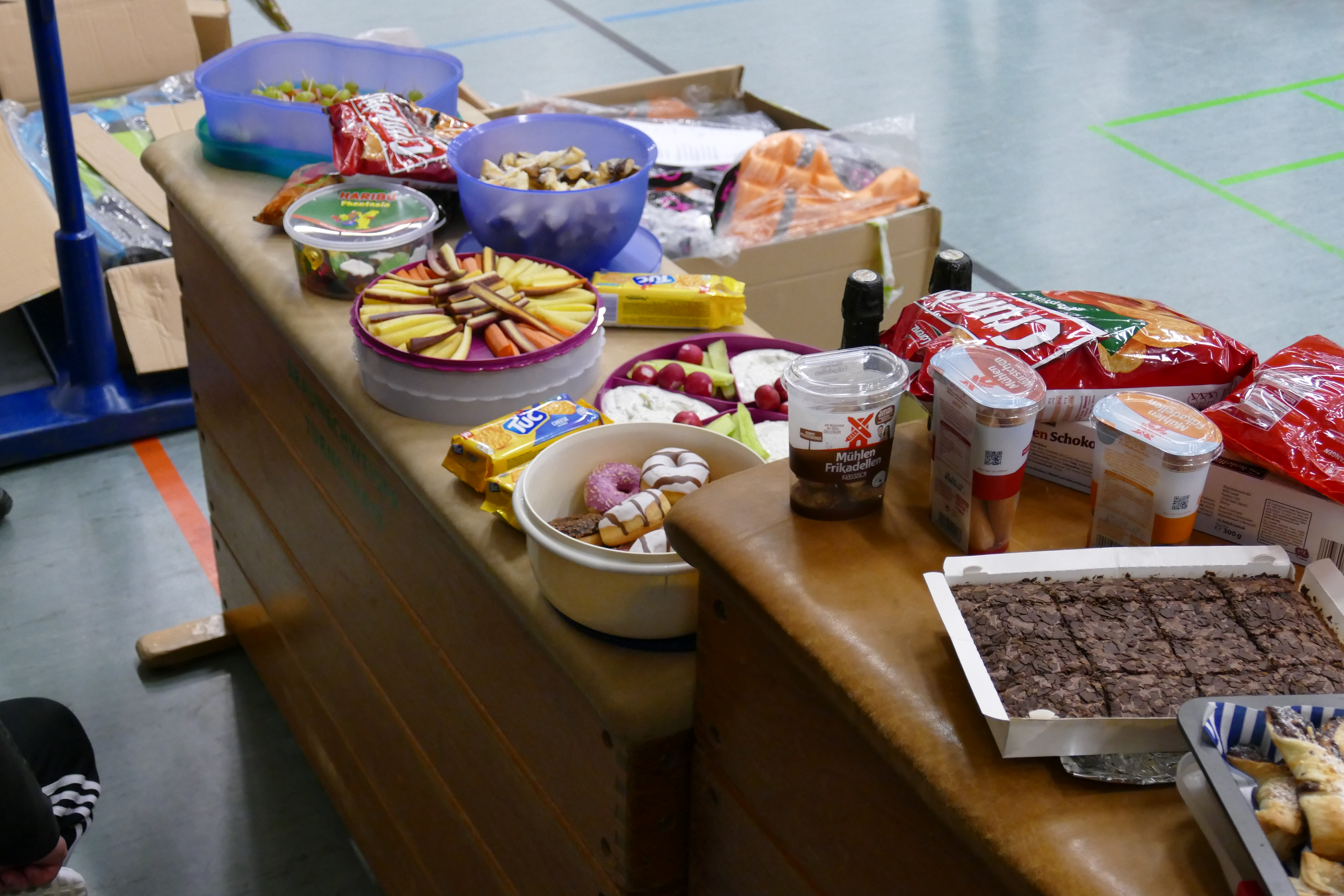 Aber am Freitag wurde nicht nur gefeiert, sondern es wurde sich auch sportlich betätigt, gemeinschaftlich Sirtaki getanzt und das vielfältige Buffet geräubert. Außerdem wurden die frisch eingetroffenen, neuen Torwartausrüstungen ausgepackt und anprobiert.