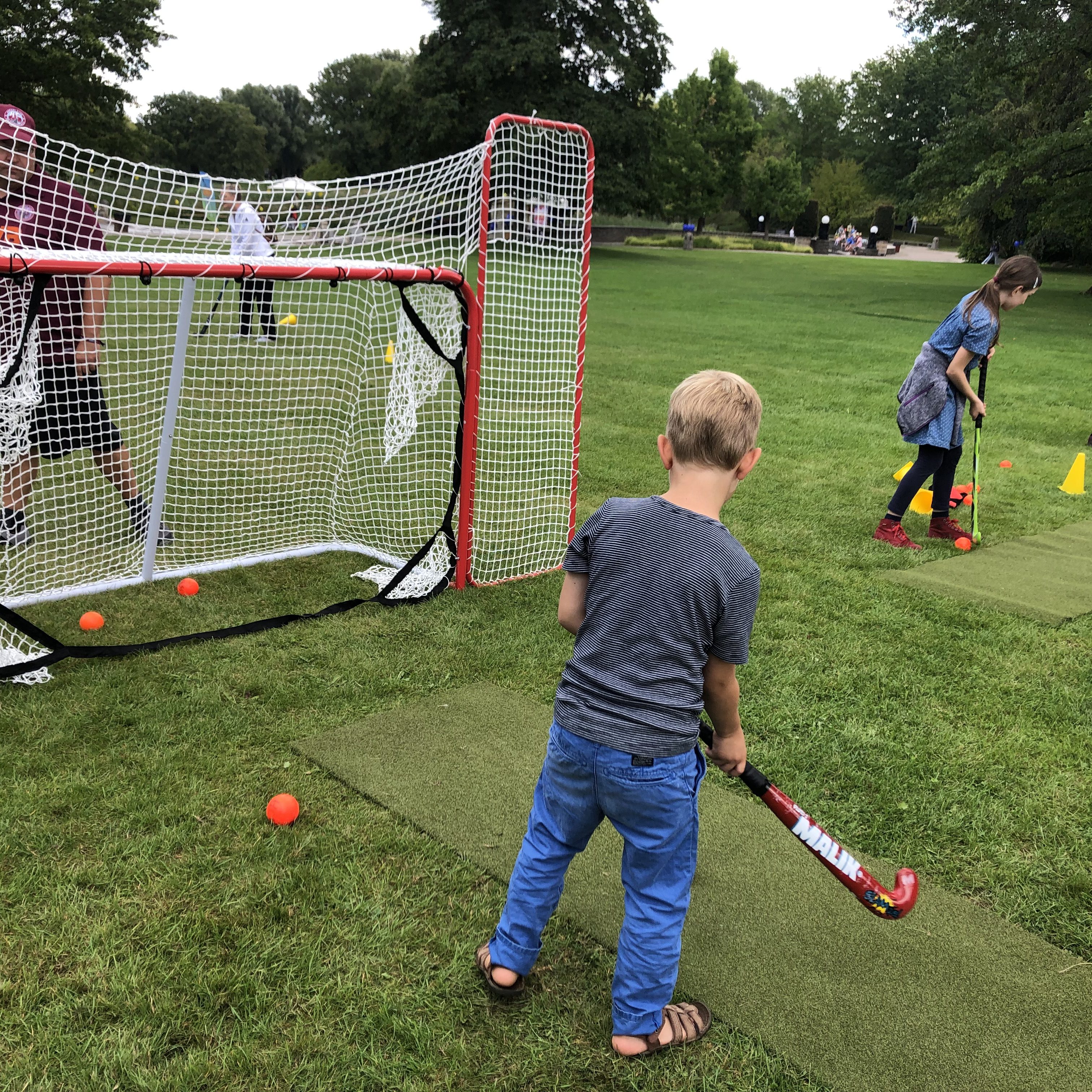 Der Wettergott hat es gut mit uns gemeint. Nach anfänglichem Regenwetter wurde der Samstag noch richtig schön, so dass doch noch viele kleine und große Besucher zu unserem Stand im Britzer Garten gekommen sind. Unser neues Tor wurde gut bespielt und unsere Flyer und Information fanden großes Interesse.