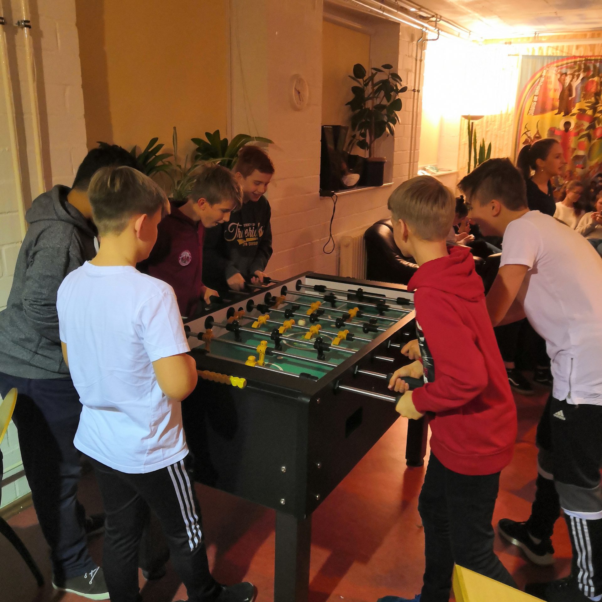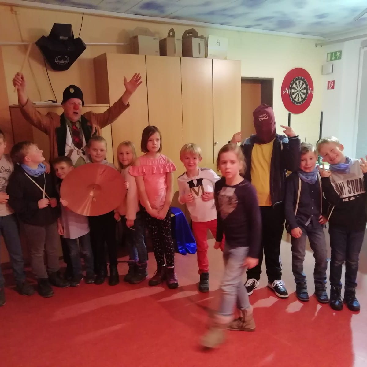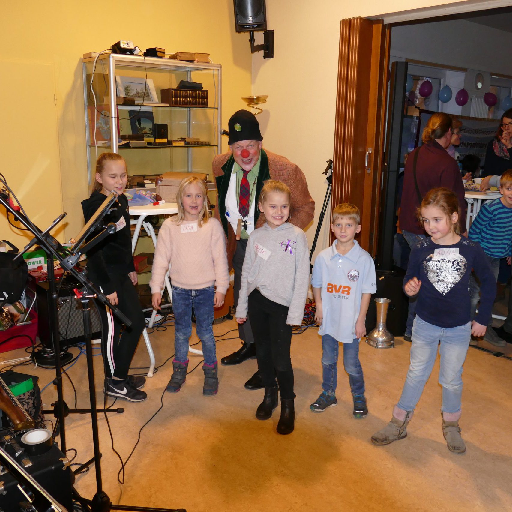 Für die beste Unterhaltung bei den kleinen Besuchern (und so manch großem Besucher) sorgte Clown Kalli. Neben kleinen Kunststücken präsentierte er das große „Achtung-ich-Kieke-Stopp-Spiel“. Die kleine Hauptgewinnerin freute sich über ein Schlagzeug-Becken mit dem sie zukünftig den HC BB anfeuern kann.
