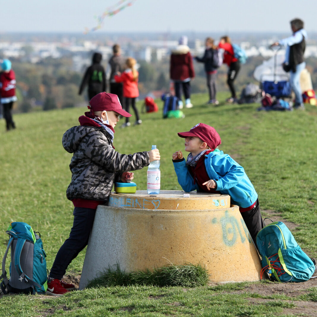 Natürlich durfte auch das Pizzaessen nicht fehlen, dass bereits im Sommercamp großen Anklang fand. Ein „Fitnessstudio“ in der Halle und viele andere Dinge trugen zum Teambuilding bei. Am Donnerstagmorgen, um kurz nach 09:00 Uhr, begann dann unser Ausflug. Wir liefen den Kölner Damm in Richtung Großziethen und erklommen mit dem Bollerwagen den ehemaligen Müllberg. Dort ließen wir unsere tollen, selbst gebauten und bemalten Drachen in die Lüfte steigen. Der Wettergott war mit uns und wir hatten Sonne, Wind und angenehme Temperaturen. Gegen 11:15 Uhr, nach einer zünftigen Gipfelbrotzeit, mit Essen und Trinken aus dem Rucksack gestärkt, traten wir wieder den Rückweg an. Voller Stolz, dass die Kids 5,5 km gewandert sind, ohne über den langen Weg gemeckert wurde: „Ich kann nicht mehr!!“ Am Freitag erhielten dann alle am Ende ihr Campgeschenk in Form eines Gutscheins. Das Geschenk ist noch im in der Produktion und das neuste Merchandisingprojekt des HCBB.