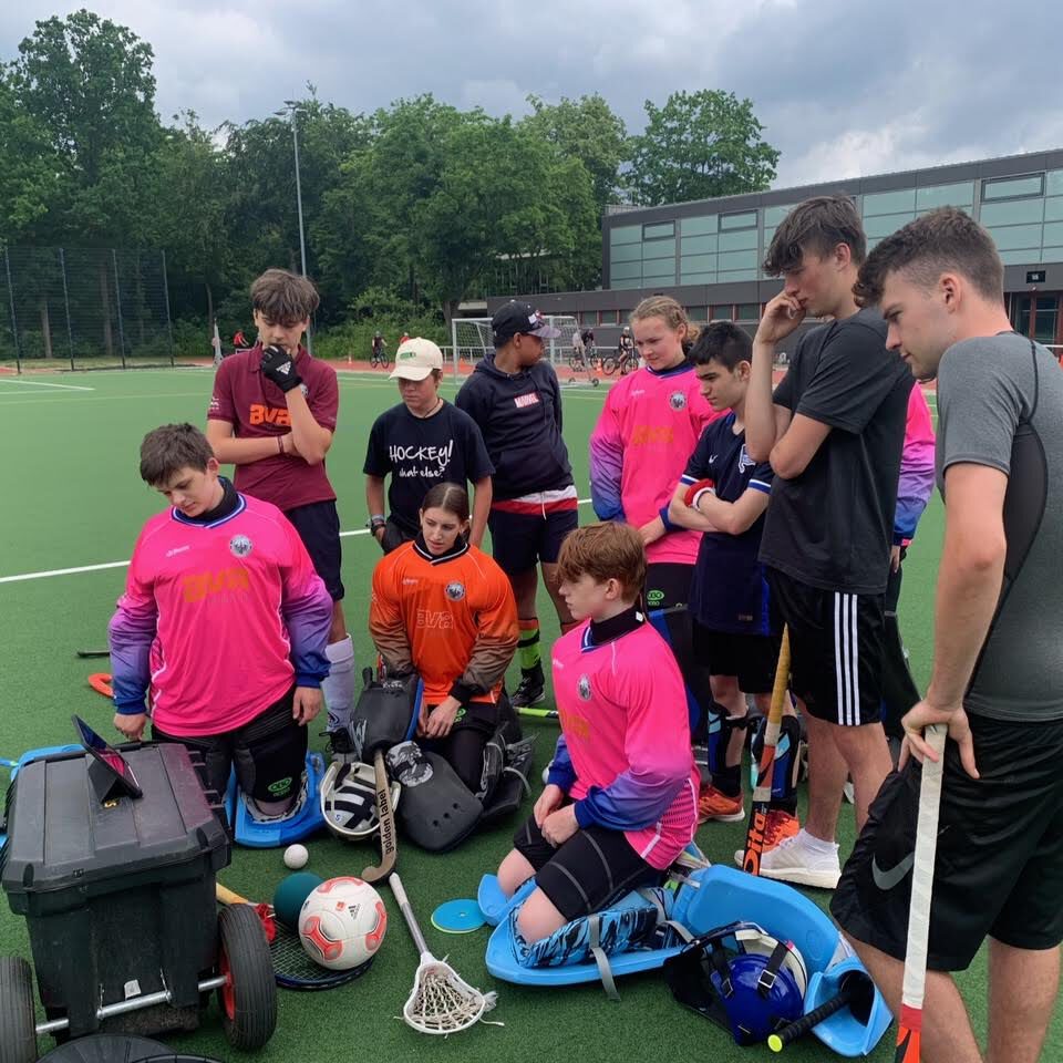 Die erste Stunde, war meist die entspannteste, denn das war unsere Erwärmung sowie teambildende Zeit. Neben einfacher Erwärmung, haben wir auch in andere Sportarten geschnuppert. Dafür ist unser Gelände nahezu perfekt, denn wir haben Fußball, Basketball, Frisbee und sogar Beach-Volleyball spielen können um enger zusammen zu wachsen. Die anderen 2 Stunden haben wir dann für Hockey genutzt. Durch die zusätzliche Zeit am Wochenende konnten wir die Basics nochmal aufgreifen und verbessern. Jedoch die Hitze hat die Konzentration stark beeinträchtigt, weshalb wir mehrere Pausen machen mussten. In den Pausen gab es dann ein wenig Obst und sogar Eis. Durch die Pausen konnten die Jungs viel Kraft tanken, die sie für das Abschlussspiel brauchten. Sogar für eine spontane Wasserschlacht, mit Eimern voll Wasser, Wasserpistolen oder sogar den Wassersprengern war noch Zeit. Zum Ende hin gab es auch mal Pizza, die wir zusammen gegessen haben, dadurch kommen die Jungs wieder runter und quatschen auch mal miteinander. Das Highlight für uns Trainer war allerdings, dass wir sogar zusammen das EM-Finale vom Hockey mit den Jungs geguckt haben. Die Trainer, sowie die Jungs, hatten auf jeden Fall sehr viel Spaß und alle konnten viel lernen.