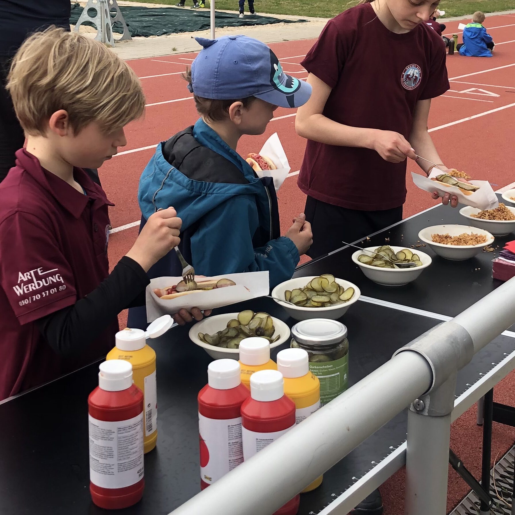 Jeden Tag begann das Camp mit einer Hockey-Einheit, in welcher die Kinder zum Start sich spielerisch warm gemacht und im Anschluss an ihrer Hockey-Technik gearbeitet haben. Gegen 12 Uhr gab es das gemeinsame Mittagessen worauf sich die Kinder sehr gefreut haben. So gab es an einem Tag Nudeln, an dem anderen Pizza und am letzten Tag Hotdogs. Dieses Essen hat die Kids zusammengeschweißt und viel für die Teambildung geholfen.