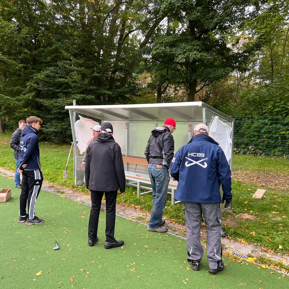 Vorletztes Wochenende wurden dann mit tatkräftiger Unterstützung einiger Helfer:innen die Spielerbänke aufgestellt. Als kleine Erinnerung: die wurden aus den erlaufenen Spenden unseres Spendenlaufs im Frühjahr finanziert.