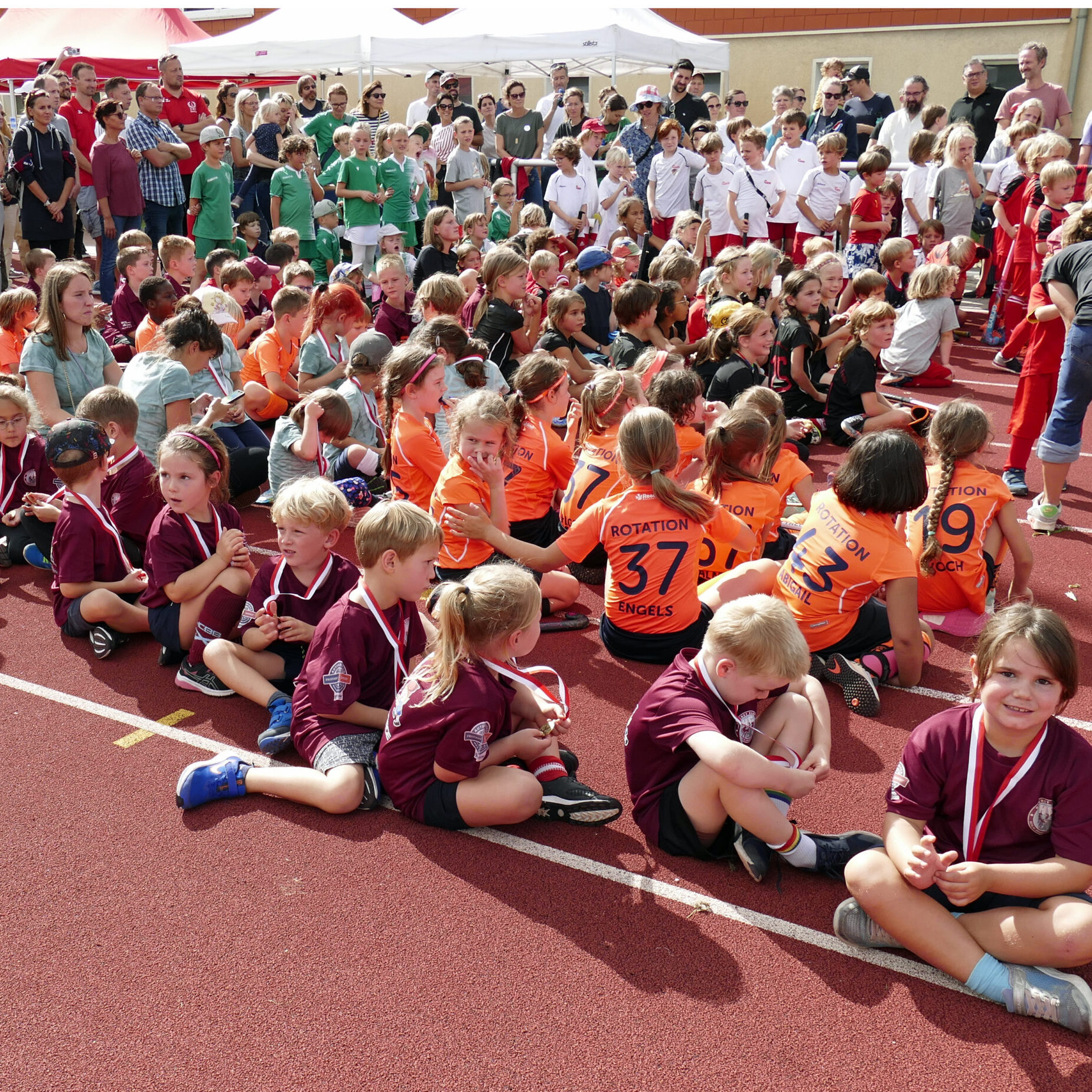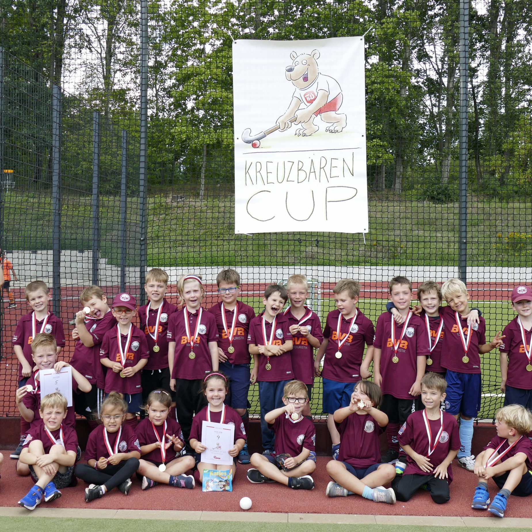 Bei der abschließenden Siegerehrung wurden alle mit einer wohlverdienten Medaille und einer Tüte Gummibärchen belohnt, die gerecht in der Mannschaft verteilt wurde. Am Ende schauten wir nur in strahlende Gesichter. So soll es sein! Bestimmt hat die erste Hockeymedaille einen Ehrenplatz im Kinderzimmer bekommen!