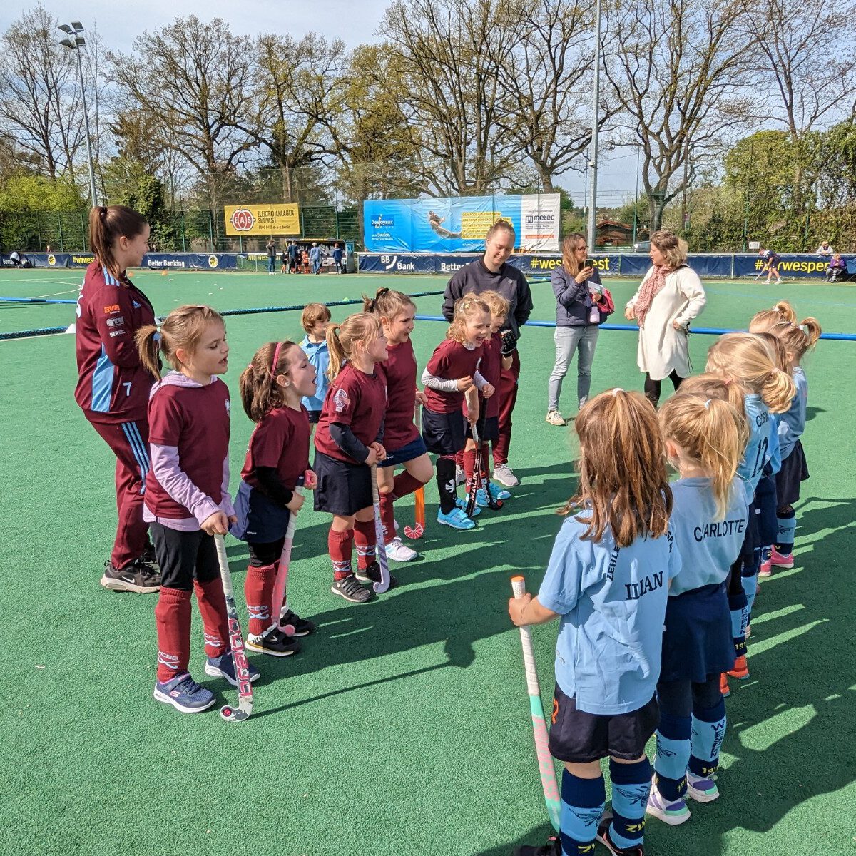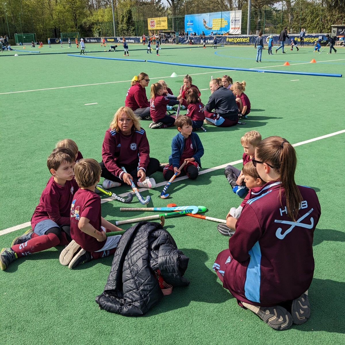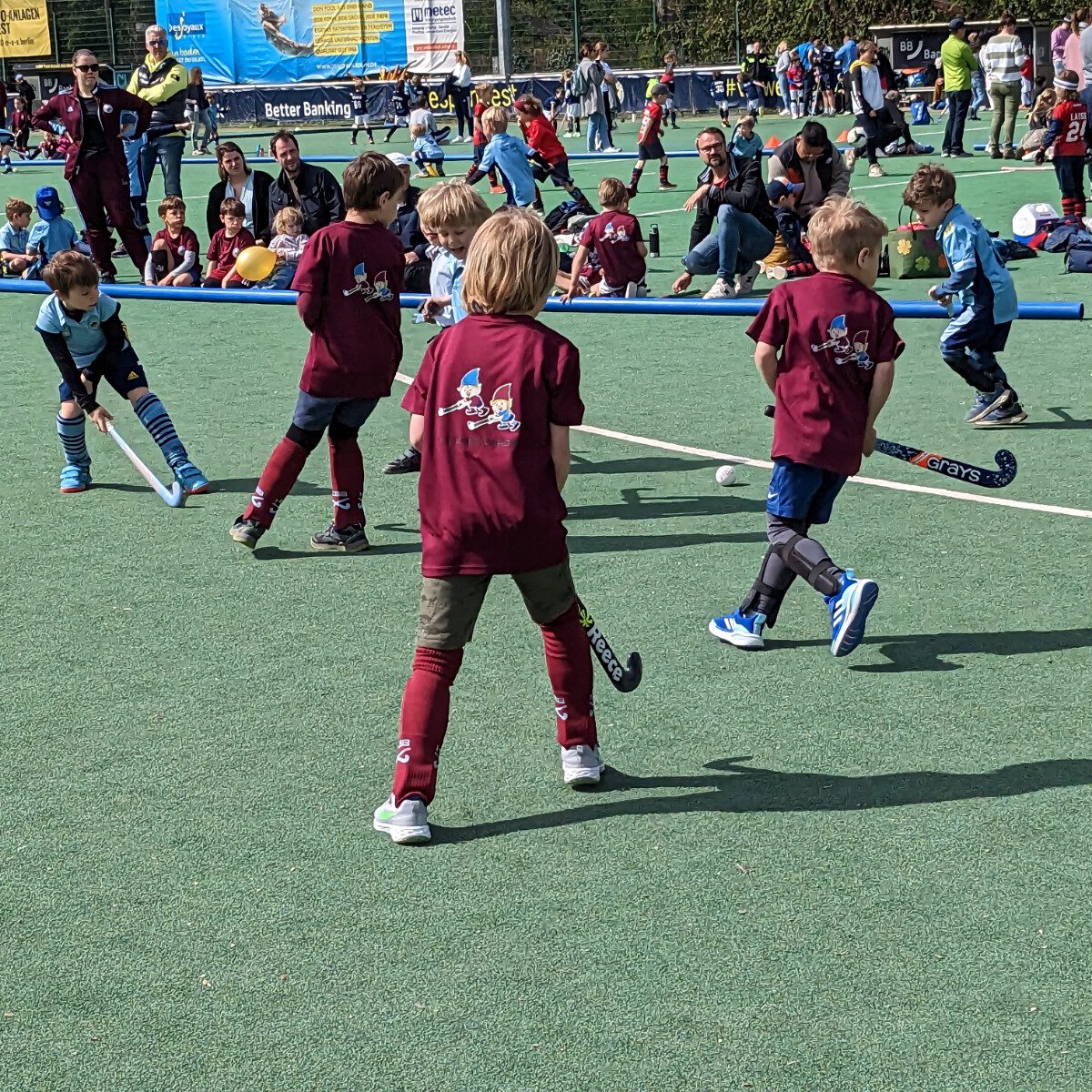 Für unsere Zwerge ging es am 1.Mai 2023 nach Zehlendorf zu den Zehlendorfer Wespen für unser erstes Turnier in der diesjährigen Feldsaison. Zum ersten Mal waren wir mit einer reinen Mädchen- und einer Jungs-Mannschaft dabei. Vor Ort erwartete uns viel Sonnenschein, perfekte Temperaturen und viele Stände für die Kids, wie Kinderschminken, Hüpfburg, Basteln, Waffeln, Kuchen, usw.