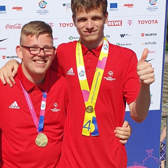 Bei den World Games, welche mit einer riesigen Feier im Berliner Olympiastadion eröffnet wurden, waren mit Marius Schwahn und Lucas Lenzner gleich zwei unserer Athleten dabei. Im Hockeystadion im Olympiapark ging es in vielen Spielen um die Platzierungen in drei Klassen. Es waren insgesamt 13 Mannschaften im Rennen um die begehrten Medaillen. Bei tollen Wetter gaben die Sportler alles, es war eine Freund ihnen zu zusehen und auch sie selber hatten großen Spaß. Die Anstrengung war ihnen am letzten Tag, dem Tag der Finals anzumerken. Umso größer war die Freude über die Unterstützung durch die Freunde aus der Schule, den Vereinen und natürlich den Familien. Im Finale gegen die Niederlande erreichte das Team GER2 mit Lucas den ersten Platz in der Gruppe „Challenge“ und errang damit eine Goldmedaille. Das Team GER 1 erreichte in der schwierigen Gruppe „Championship“ einen respektablen vierten Platz. Wir gratulieren allen Teilnehmer zu ihren Leistungen und Erfolgen. Besonders freuen wir uns darüber, dass Hockey durch eine sehenswerte Leistung und sehr gute Organisation, die Aufnahme in die Special Olympics geschafft hat. Besonders nah ging vielen Beteiligten, dass die Mannschaften sich nach der Siegerehrung auf dem Platz versammelten und ein Spalier für die vielen Helfer, Schiedsrichter und Offiziellen bildeten. Die Art der Respekt- und Dankerweisung war ganz großes Kino. Die Abschlussfeier am Sonntag vor dem Brandenburger Tor ließ nochmal Platz für gemeinsames Feiern und Emotionen.