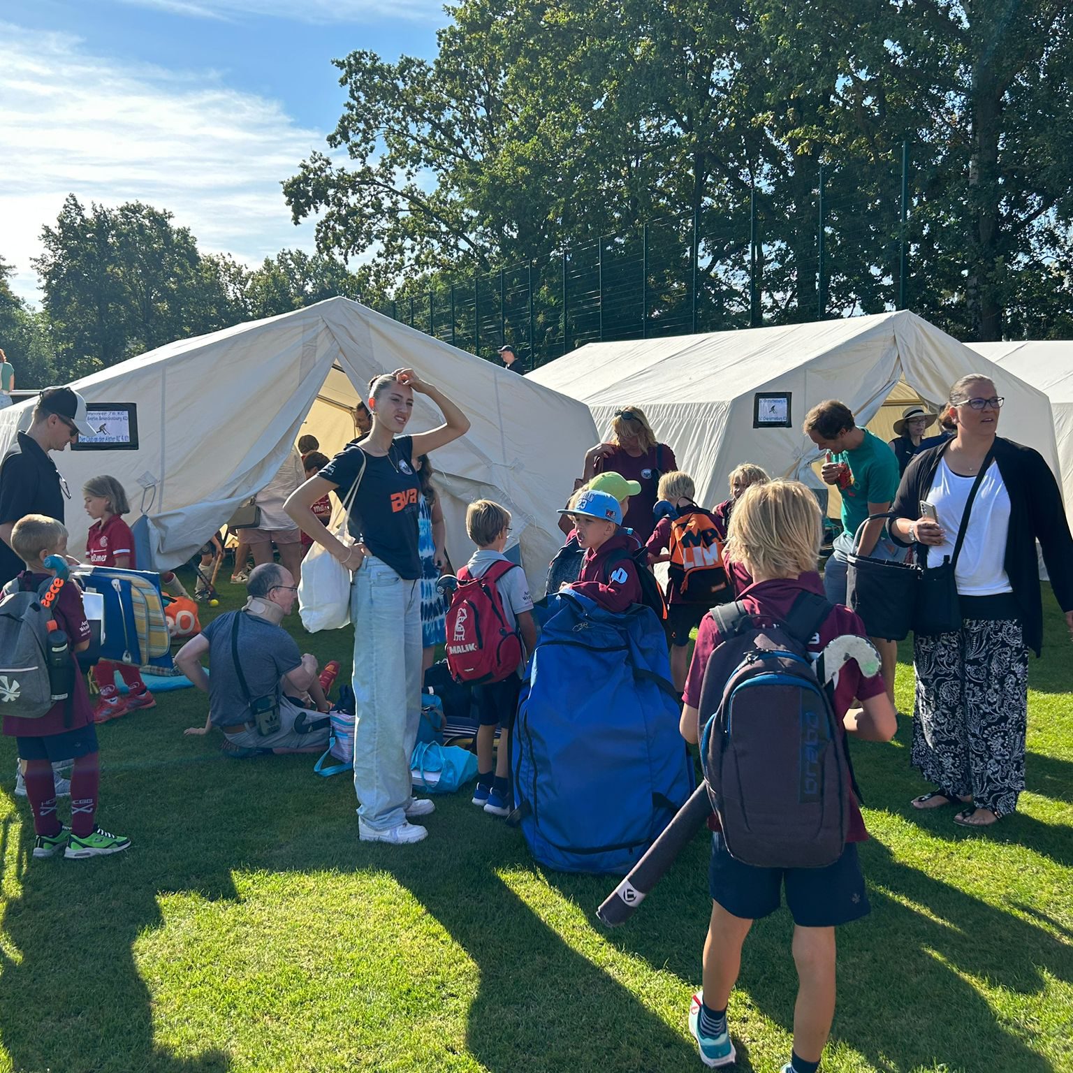 Wir waren am 09. und 10.09. mit der männlichen U8 beim Bärchen Cup. Dieses war unser erstes großes Turnier mit der neu formierten Mannschaft und alle waren sehr aufgeregt. Neben den Hockeyspielen waren viele Freizeitangebote aufgebaut. Wir hatten sogar ein Zelt, um uns vor der Hitze zu schützen.