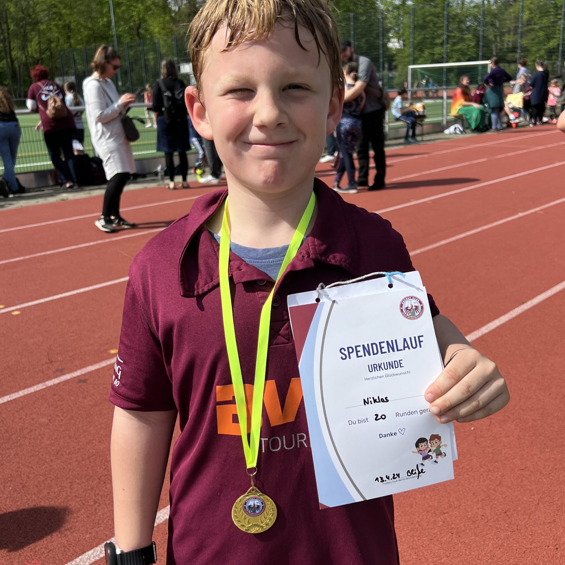 Der Rundenrekord wurde von Mattis aus der MU12 mit beeindruckenden 90 Runden aufgestellt. Die Teilnehmerinnen und Teilnehmer waren bunt gemischt: Die Jüngsten waren gerade einmal 4 Jahre alt, während der älteste Teilnehmer stolze 82 Jahre zählte. Diese Vielfalt spiegelte die Gemeinschaft des HCBB wider und machte den Spendenlauf zu einem besonderen Ereignis.