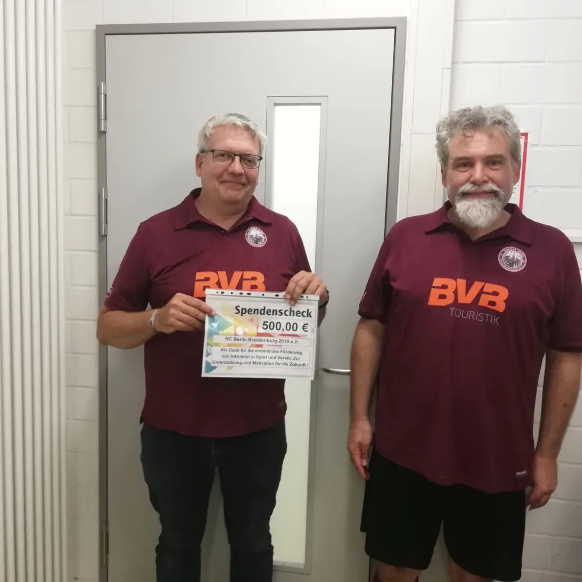 Uns wurde an diesem Tag auch ein Spendenscheck überreicht. Herzlichen Dank an alle Sponsoren und Unterstützer für das Inklusion-Projekt im HCBB.