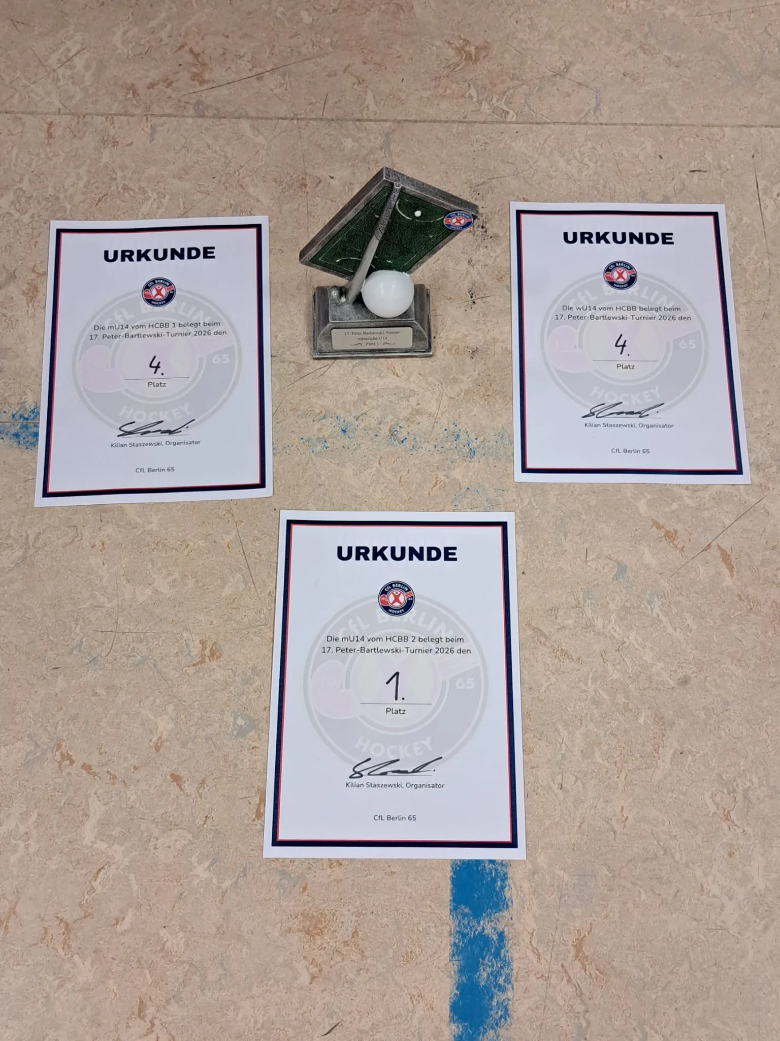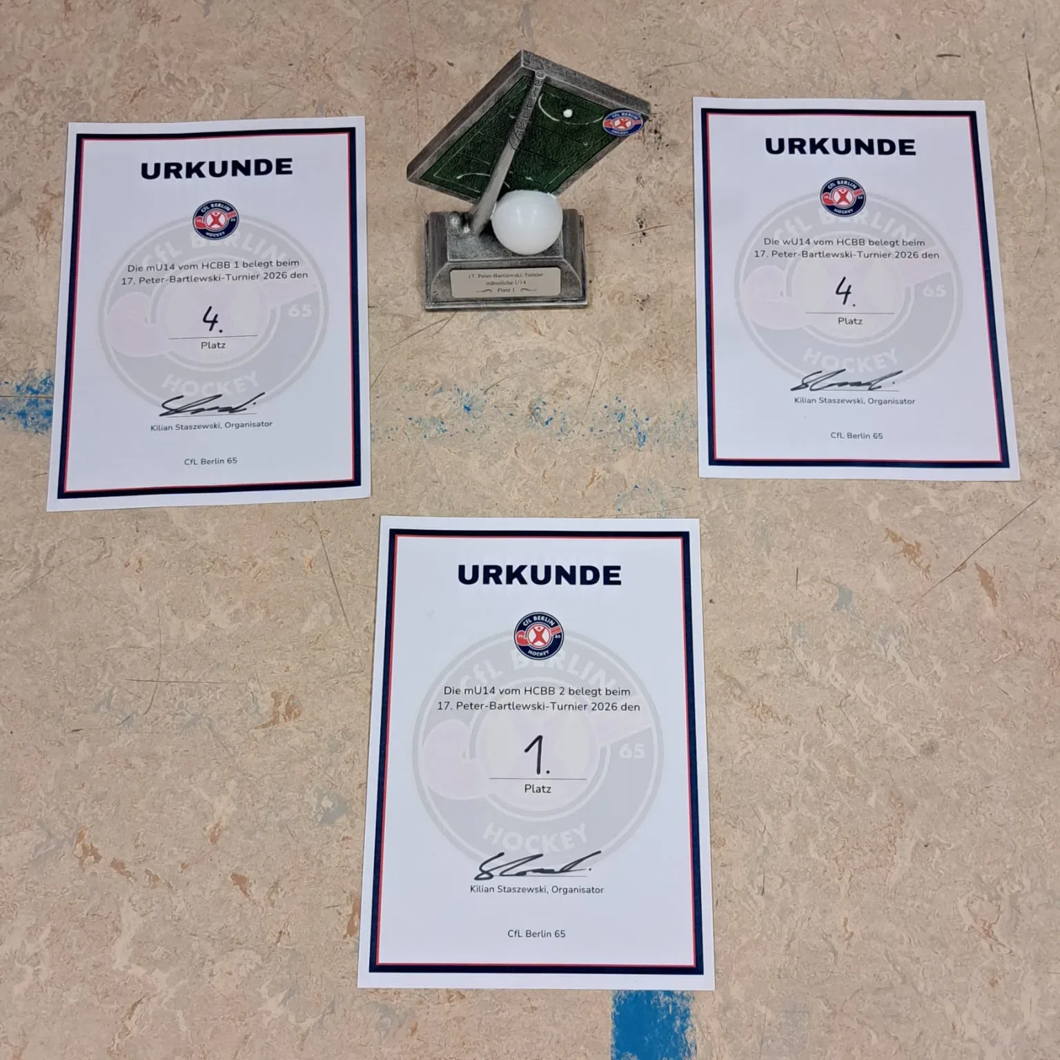 Unsere mU14 ging mit gleich zwei Teams a den Start. Beide Mannschaften schafften es bis ins Halbfinale, worauf wir sehr stolz sind. Am Ende konnte eine unserer mU14-Mannschaften das Turnier sogar gewinnen: Mit einem knappen 1:0-Sieg gegen Potsdam sicherten wir uns den 1. Platz, während das zweite Team einen starken 4. Platz belegte 💪 Damit erreichten wir in dieser Altersklasse sowohl den 1. als auch den 4. Platz.