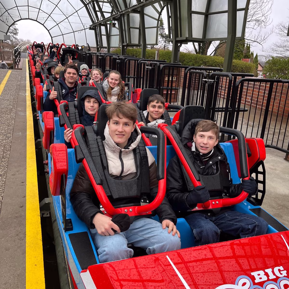 Nach unserer Ankunft bezogen wir schnell unsere Häuser und machten uns direkt auf in den Park. Gleich zu Beginn wagten wir uns als gesamte Mannschaft auf den „Big Loop“ – für einige von uns war es sogar die erste Achterbahnfahrt überhaupt! Anschließend ging es zu vielen weiteren großen und kleinen Attraktionen. Besonders Glück hatten wir mit den Wartezeiten: Am Samstag mussten wir oft nicht länger als zwei Minuten anstehen und konnten so fast alle großen Achterbahnen fahren.