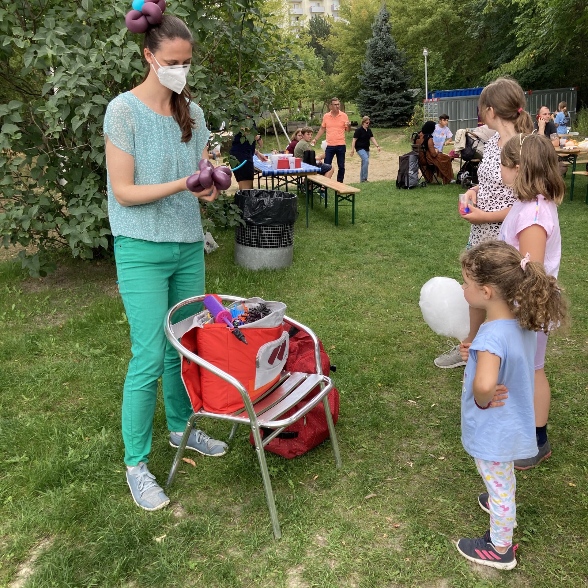 Am letzten Samstag war das beste Wetter der gesamten letzten Woche. Bei viel Sonnerschein, vereinzelten Schönwetterwolken und 25 Grad konnten wir unser Vereinssommerfest feiern. Die Stimmung war großartig. Unter Einhaltung der Bestimmungen der aller neuesten Coronaverordnung des Landes fand es auf dem wunderschönen Abenteuerspielplatz am Wildhüterweg statt. Dadurch gab es nicht nur für die Großen ein tolles Programm, sondern vor allem für unseren kleinen Mitglieder und Besucher. Neben dem Spielplatz standen Volleyballfeld, Tischtennisplatten und ein Hockeytor für sportliche Aktivitäten zur Verfügung. Außerdem konnten Bücherwürmer gebastelt, Sandbilder der Sandelfe gestaltet, Stockbrot am Lagerfeuer gebacken und die Trommelkünste verbessert werden. Ein Knaller für die Kleinsten war natürlich die riesige Hüpfburg unseres Sponsors BER, dem Flughafen Berlin Brandenburg.
