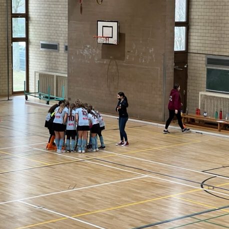 Am Sonntag den 27.02. um 10 Uhr startete das Spiel unserer wU12/Mädchen B in der Walter-Gropius-Halle gegen Rotation. Die Mädels waren schon sehr aufgeregt, was sich aber gleich mit Anpfiff legte. Das Spiel ging hin und her und fand auf Augenhöhe statt. Zur Pause stand es dann auch 1:1